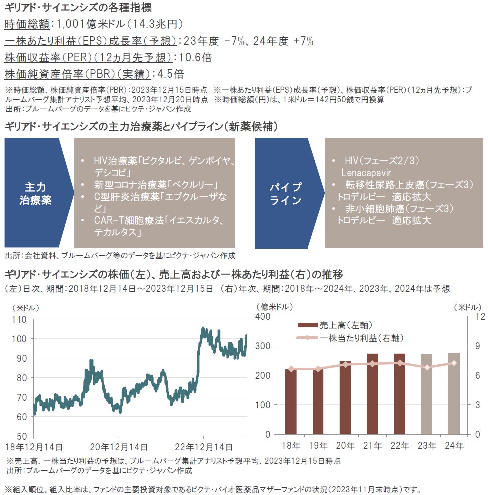 ■ギリアド・サイエンシズ(米国、組入比率 8.0%(組入3位)):HIVやC型肝炎などの感染症治療薬に強み