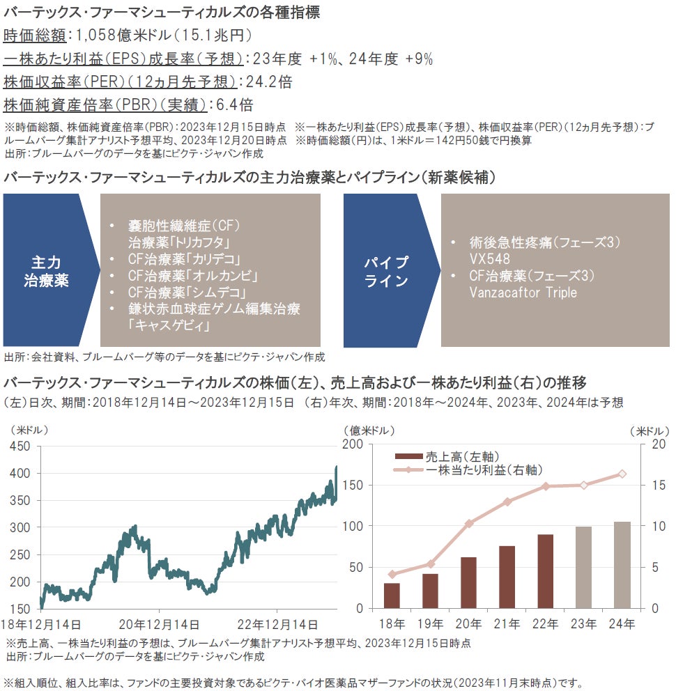 ■バーテックス・ファーマシューティカルズ(米国、組入比率 8.0%(組入2位)):嚢胞性線維症治療薬のパイオニア、鎮痛剤のパイプラインへの期待が高まる