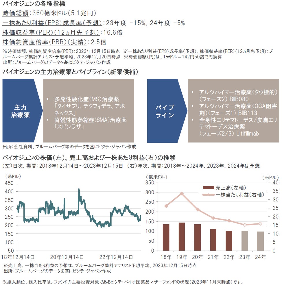 ■バイオジェン(米国、組入比率 5.1%(組入5位)):多発性硬化症治療薬は市場をリード、アルツハイマー病治療薬の開発でも注目を集める