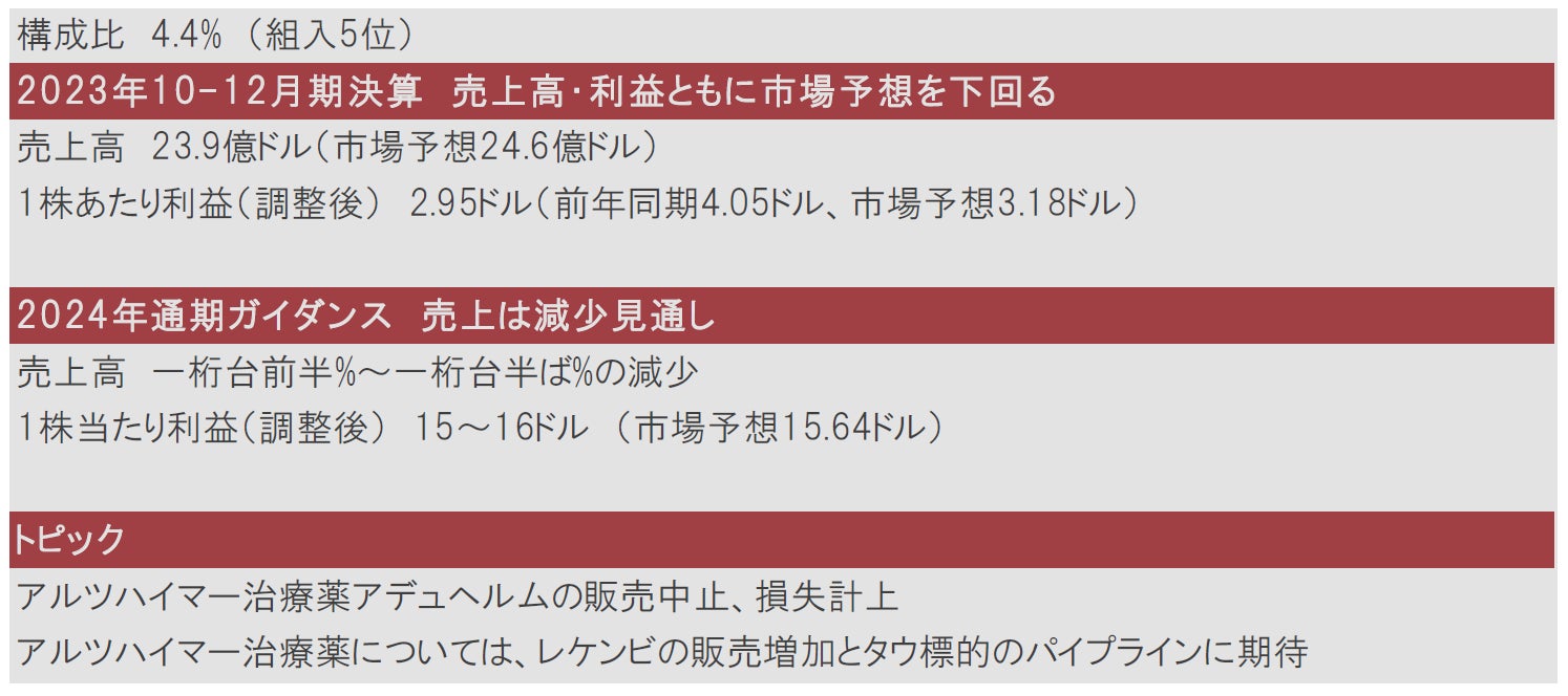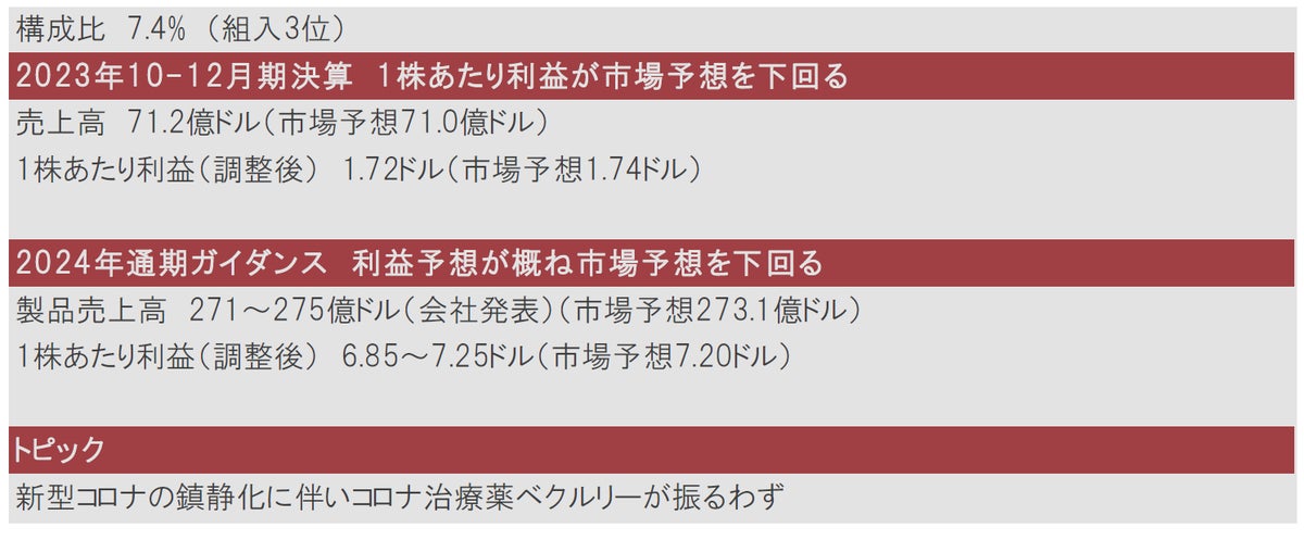 2023年10-12月期の決算は、売上高は市場予想を上回った一方、利益は市場予想を下回りました。また2024年通期ガイダンスでは、利益予想が概ね市場予想を下回りました。