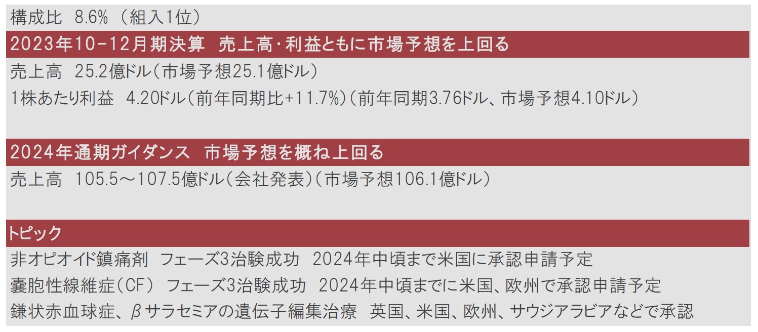 2023年10-12月期の決算は、新型コロナの抗体治療薬の需要は落ち着いたにも関わらず、売上高、利益ともに市場予想を上回りました。