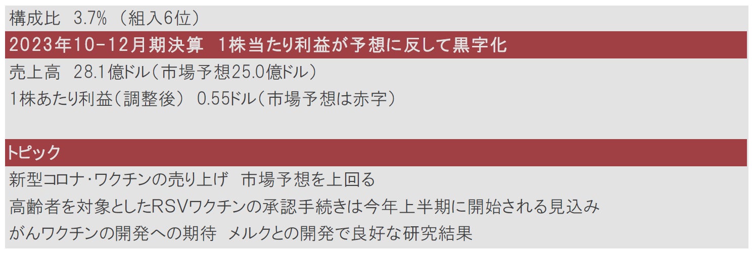 2023年10-12月期の決算は売上高が市場予想を上回り、利益については予想に反して黒字化しました。新型コロナ・ワクチンは市場予想を上回る売上となりました。