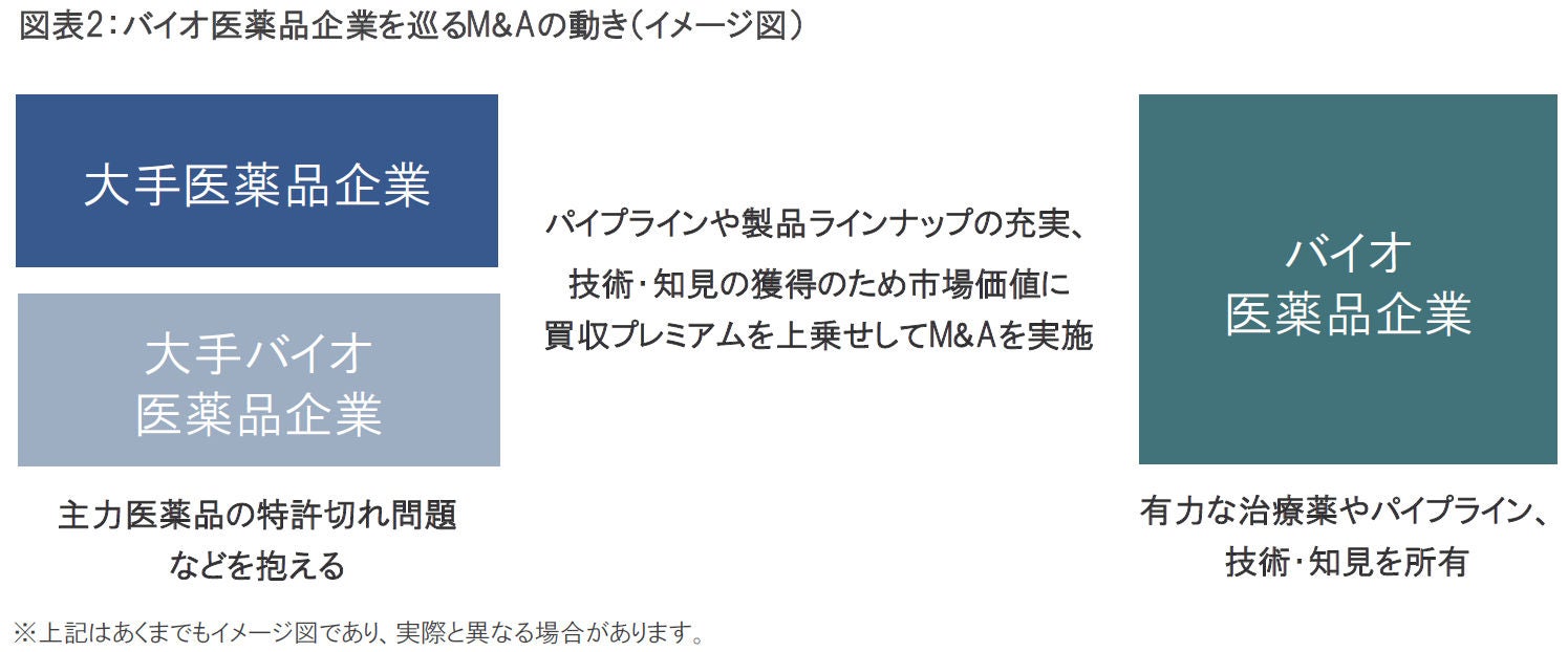 ●大手医薬品企業は有力な治療薬やパイプライン(新薬候補)獲得の選択肢のひとつとして、バイオ医薬品企業をターゲットとしたM&Aを実施