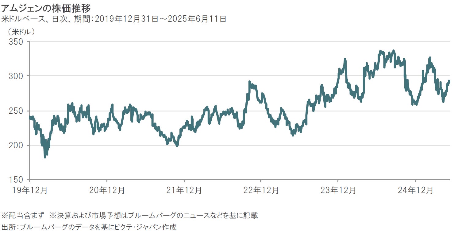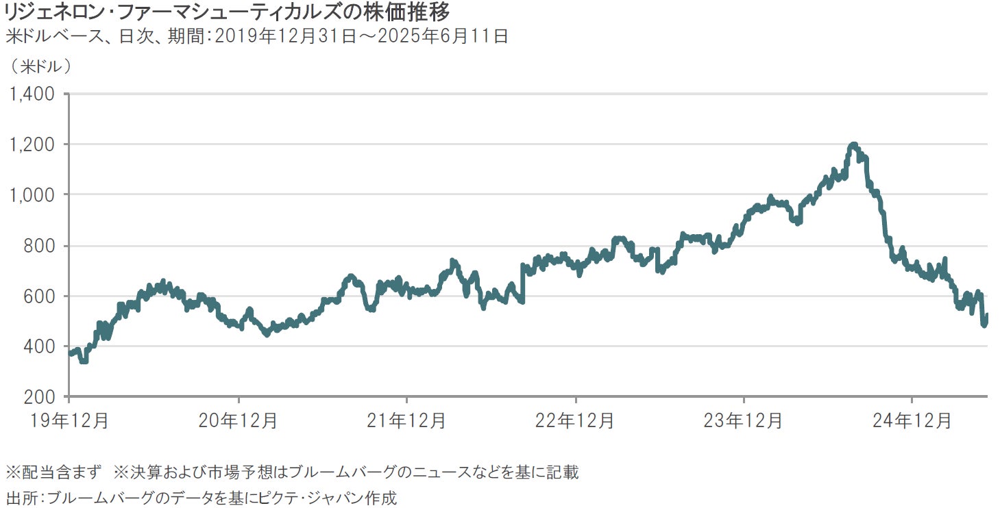 同社の株価は、アイリーアのバイオシミラー(バイオ後続品)を巡る懸念などから、2024年9月以降、下落基調にありますが、デュピクセントやがん治療薬リブタヨなどの販売が好調であることや、複数の有力なパイプラインの治験が進行していることなどを考慮すると、引き続き同社は主要なバイオ医薬品企業として注目を集めるものと考えます。