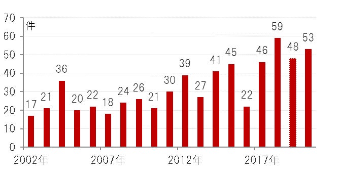 「新薬の開発」動向をはかる上でひとつの指標といえる米国の新薬承認件数は、近年、高水準で推移しています(図表1参照)。