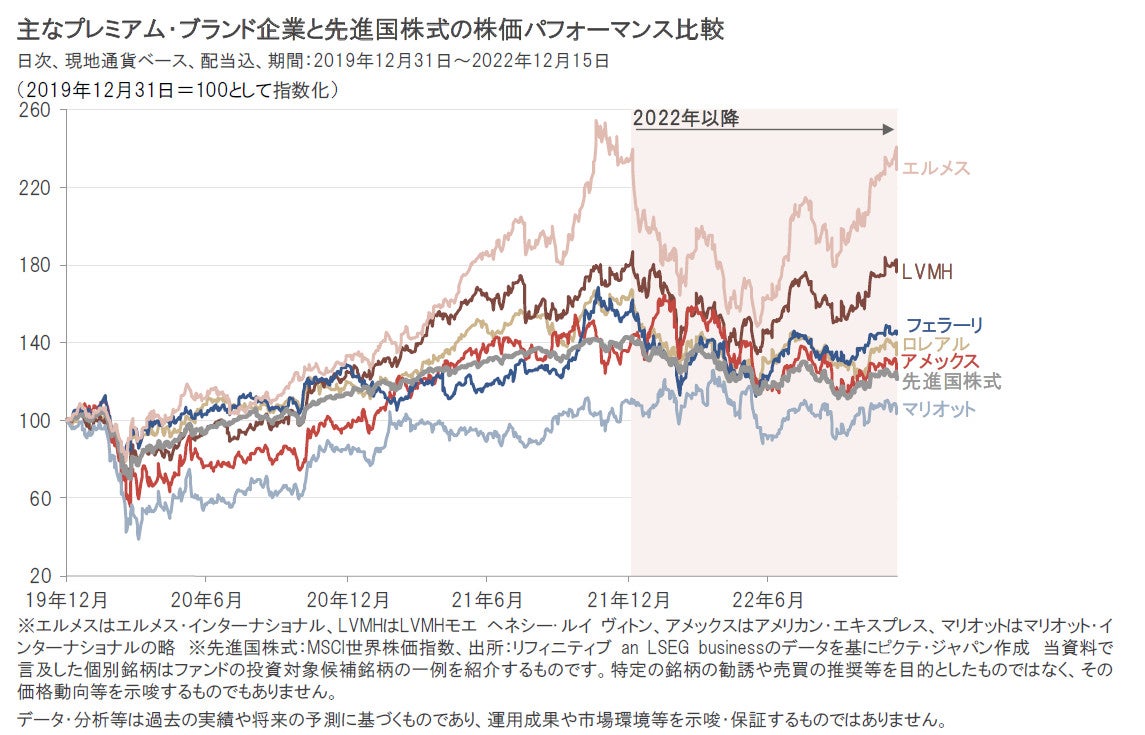 ●2022年のプレミアム・ブランド企業の株価は大きく変動、10月以降は反発も。
