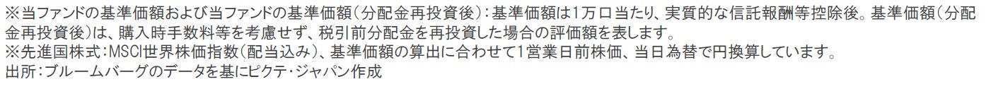注1:MSCI世界株価指数(配当込み)、当ファンドの基準価額の算出に合わせて1営業日前の株価、同日の為替レートで円換算。