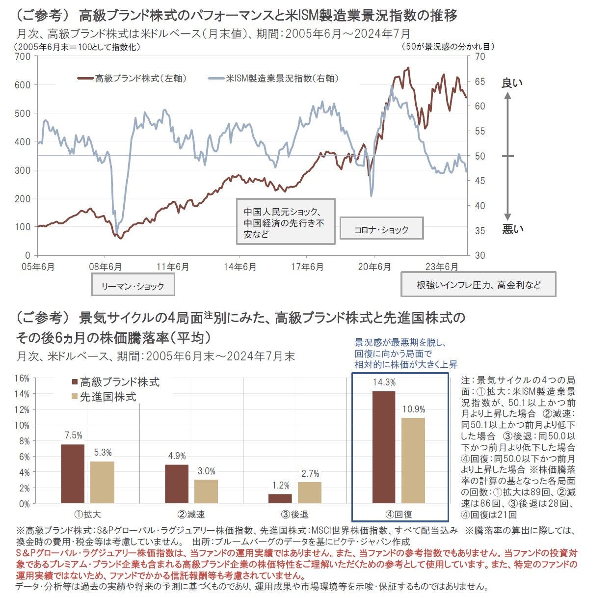 過去の実績では、プレミアム・ブランド企業の株価は、景況感が最悪期を脱し、回復に向かう局面で、相対的に大きく反発してきました。