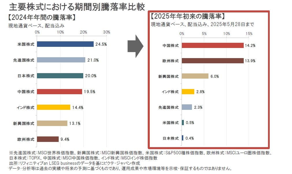 一般に、株式投資においては米国株式が中心となりがちですが、2025年年初来の株式市場では、米国株式以外の株式の上昇率が相対的に大きくなるなど、これまでとは異なる動きもみられています(2025年5月28日時点)。こうしたなかで、米国株式以外の魅力的な株式に、今後さらなる注目が集まる可能性もあると考えられます。