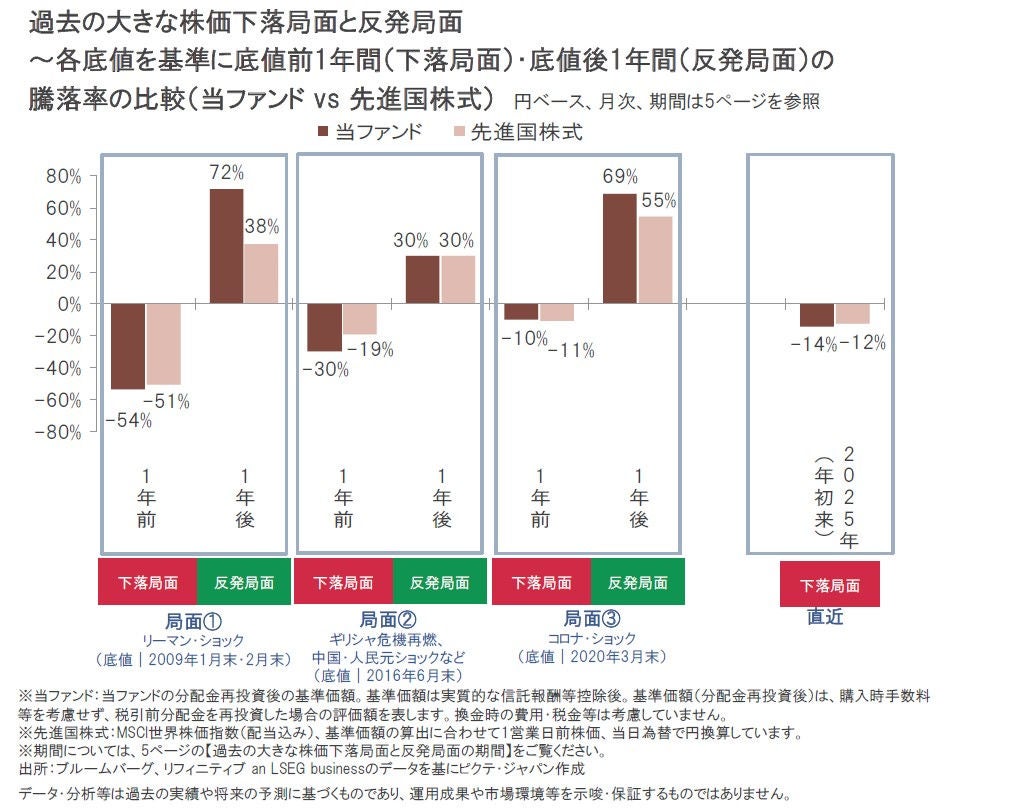プレミアム・ブランド企業の株価は、世界的な経済危機時や景気減速局面などで、大きく需要が減退するとの懸念などから、先進国株式に比べて大きく下落する傾向がみられてきました。しかし、その後の回復局面では、株価は相対的に大きく反発してきました。