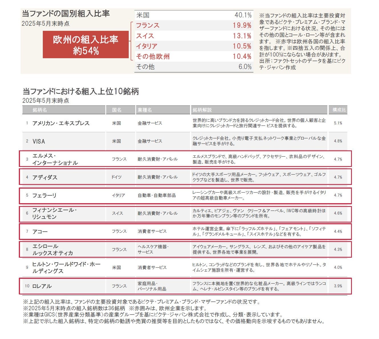 2025年年初来の株式市場では、投資家の関心が欧州株式や新興国株式など米国株式以外にも向かい始めています。こうしたなか、プレミアム・ブランド企業に投資を行う当ファンドは、欧州株式をご資産の一部として取り入れる1つの方法をご提供できると考えます。