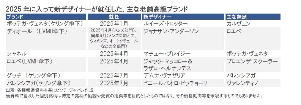 足元では、地政学リスク、トランプ関税を巡る不確実性、さらには米国をはじめ世界経済の先行き不透明感は依然として払拭されていません。こうしたことが引き続き、消費者心理にマイナスの影響を及ぼしている点は、2025年下期(主に7-12月期)のプレミアム・ブランド企業の業績動向にとってマイナス材料になると懸念されます。