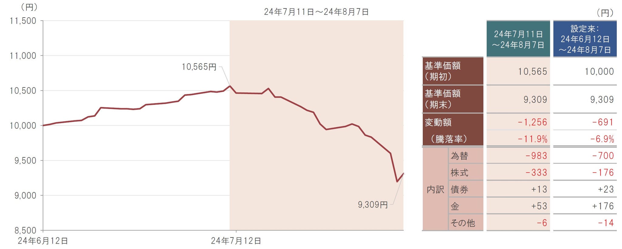日次、円ベース、期間:2024年6月12日(設定日)~2024年8月7日