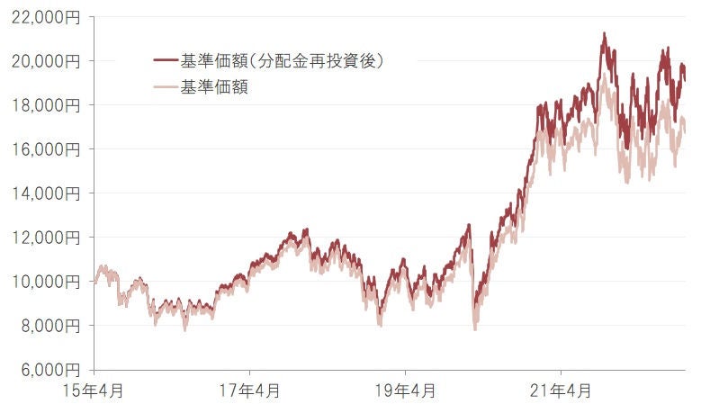 基準価額の推移(年2回決算型、為替ヘッジなし)