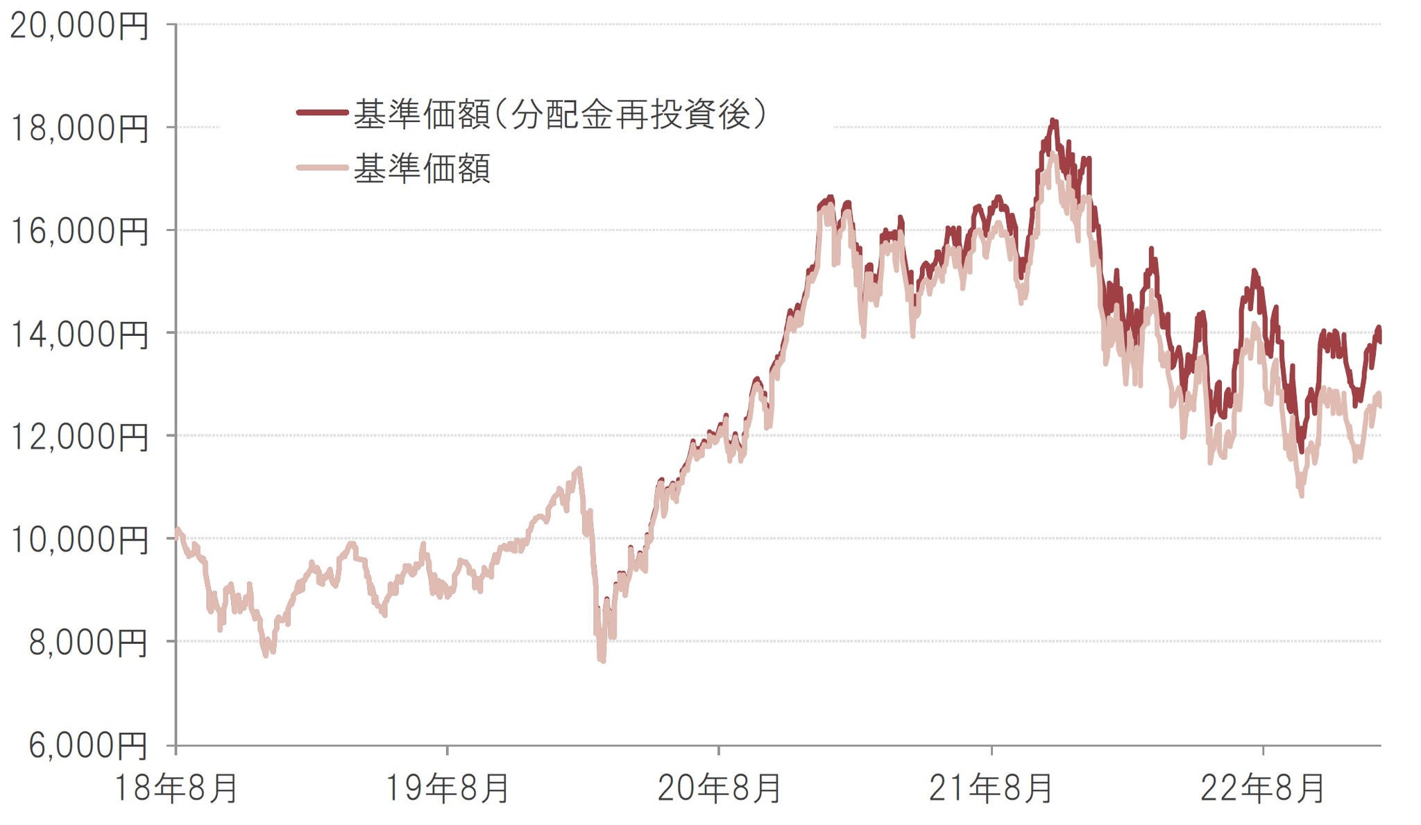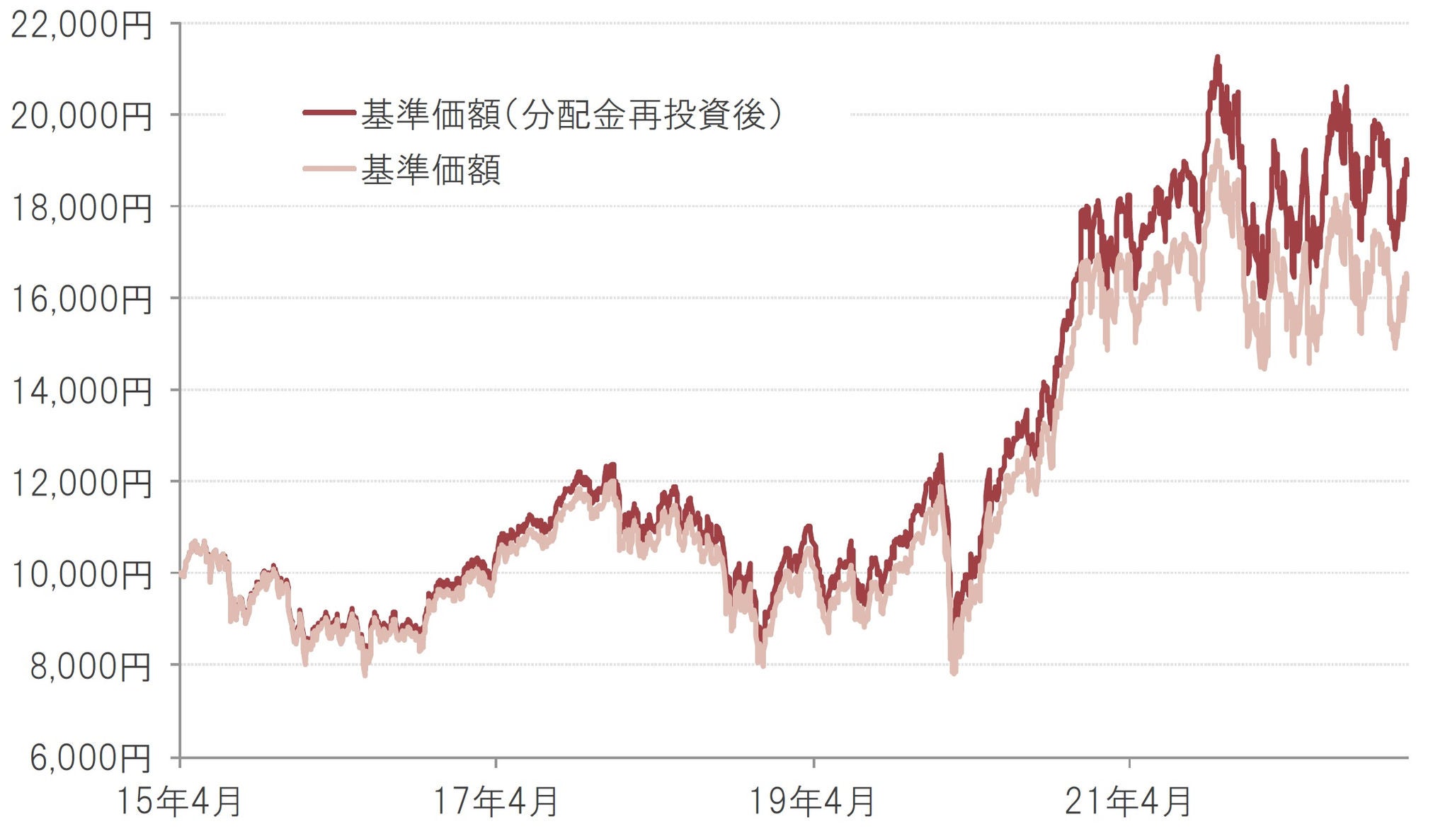 基準価額の推移(年2回決算型、為替ヘッジなし)