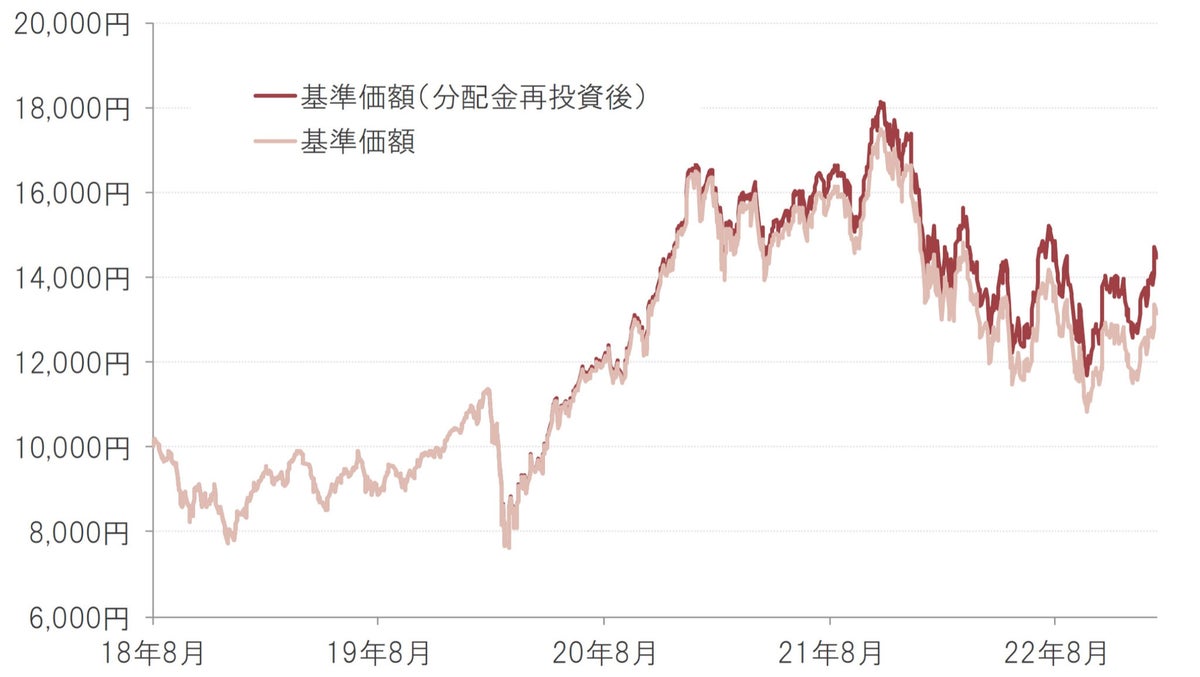 ※基準価額は1万口当たり、実質的な信託報酬等控除後。