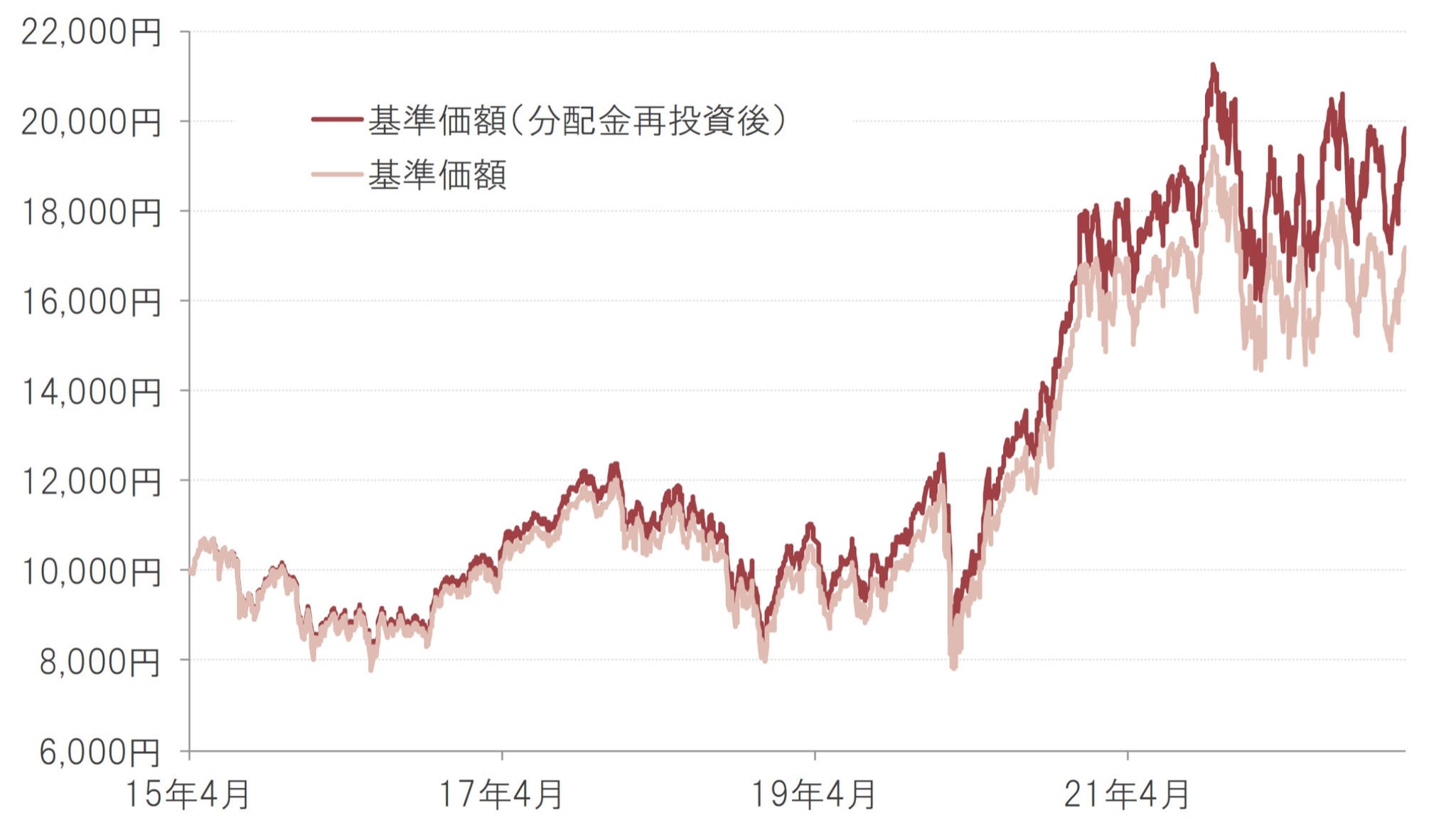 基準価額の推移(年2回決算型、為替ヘッジなし)