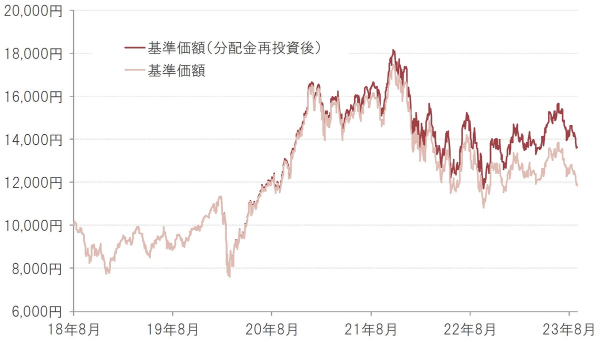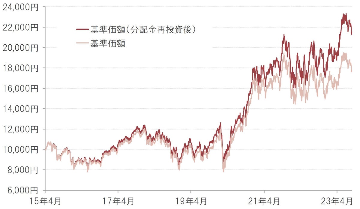 ※基準価額は1万口当たり、実質的な信託報酬等控除後。