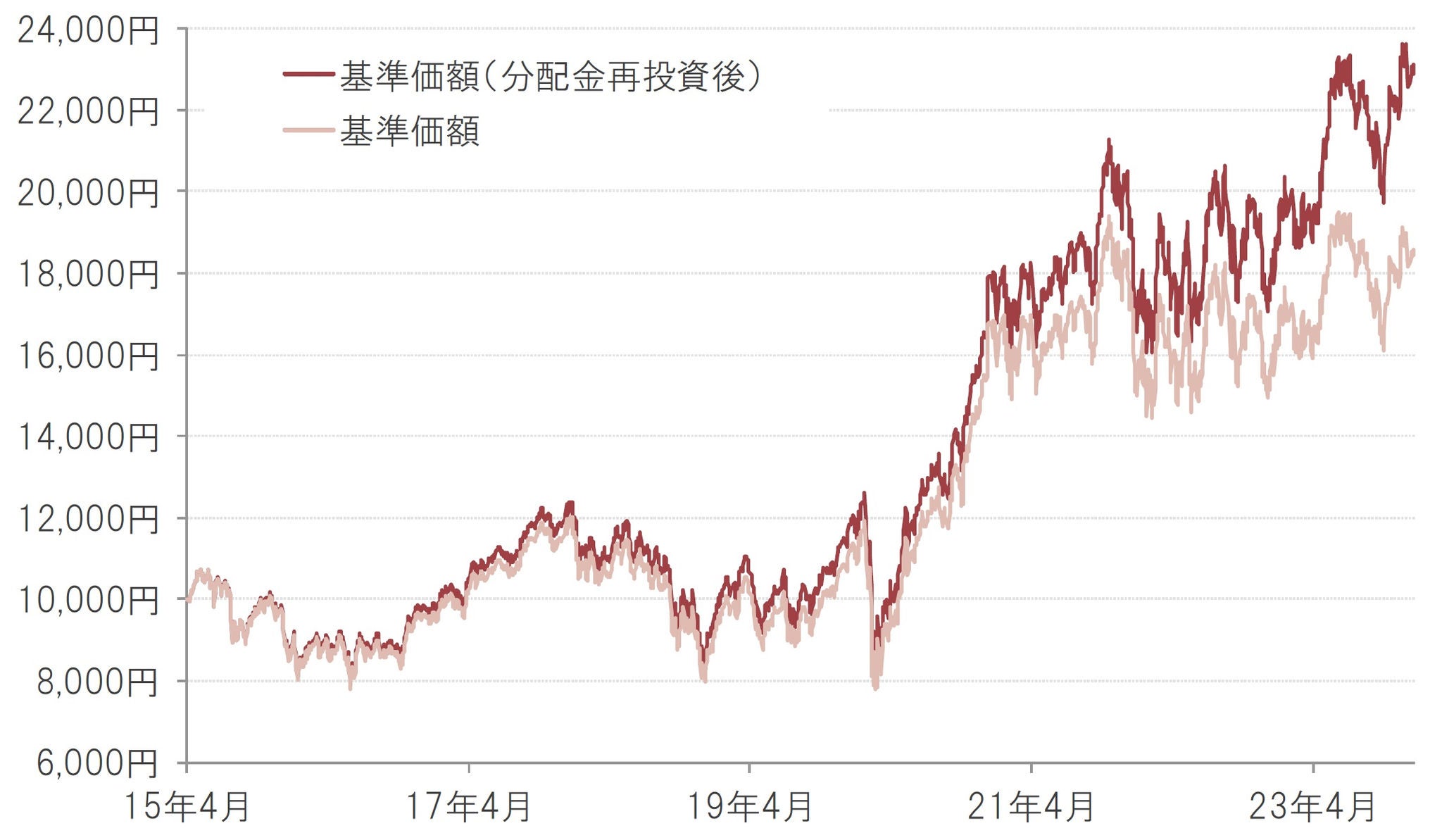※基準価額は1万口当たり、実質的な信託報酬等控除後。