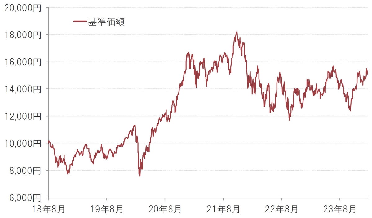 ※基準価額は1万口当たり、実質的な信託報酬等控除後。