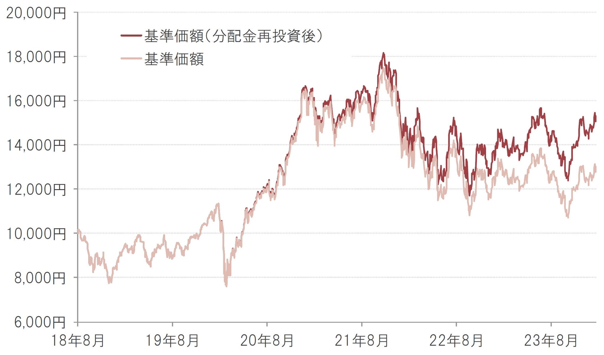 基準価額の推移(年2回決算型、為替ヘッジなし)