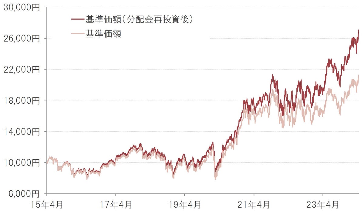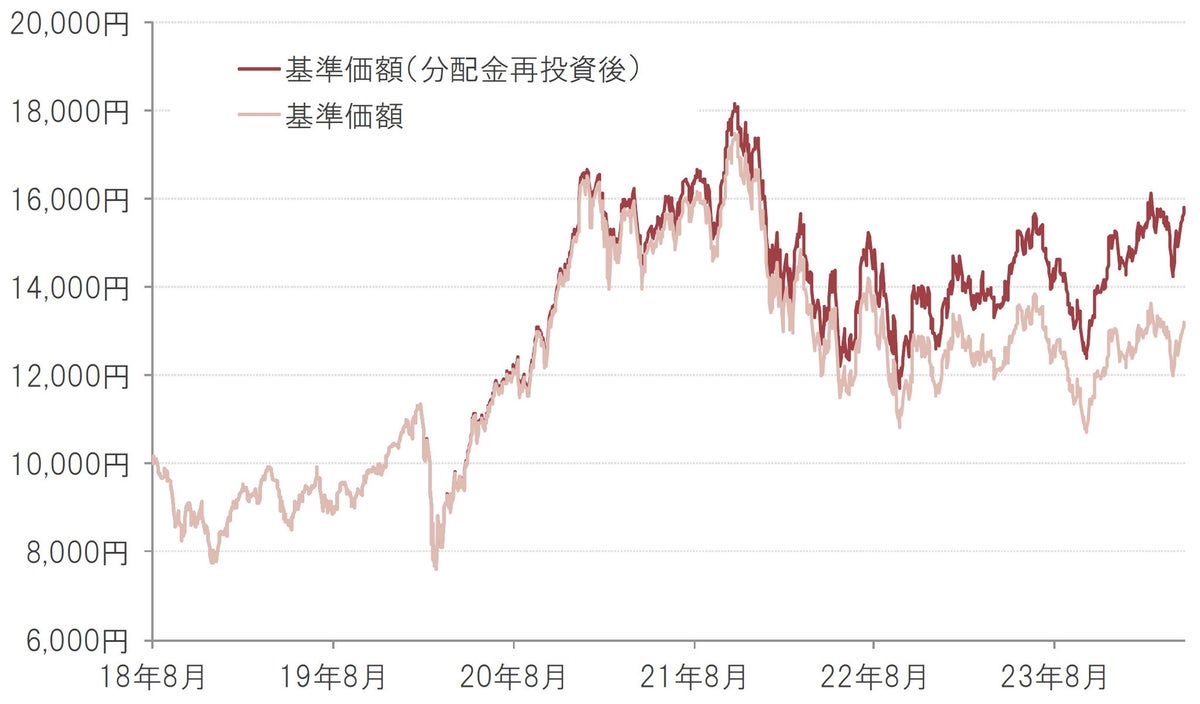 ※基準価額は1万口当たり、実質的な信託報酬等控除後。