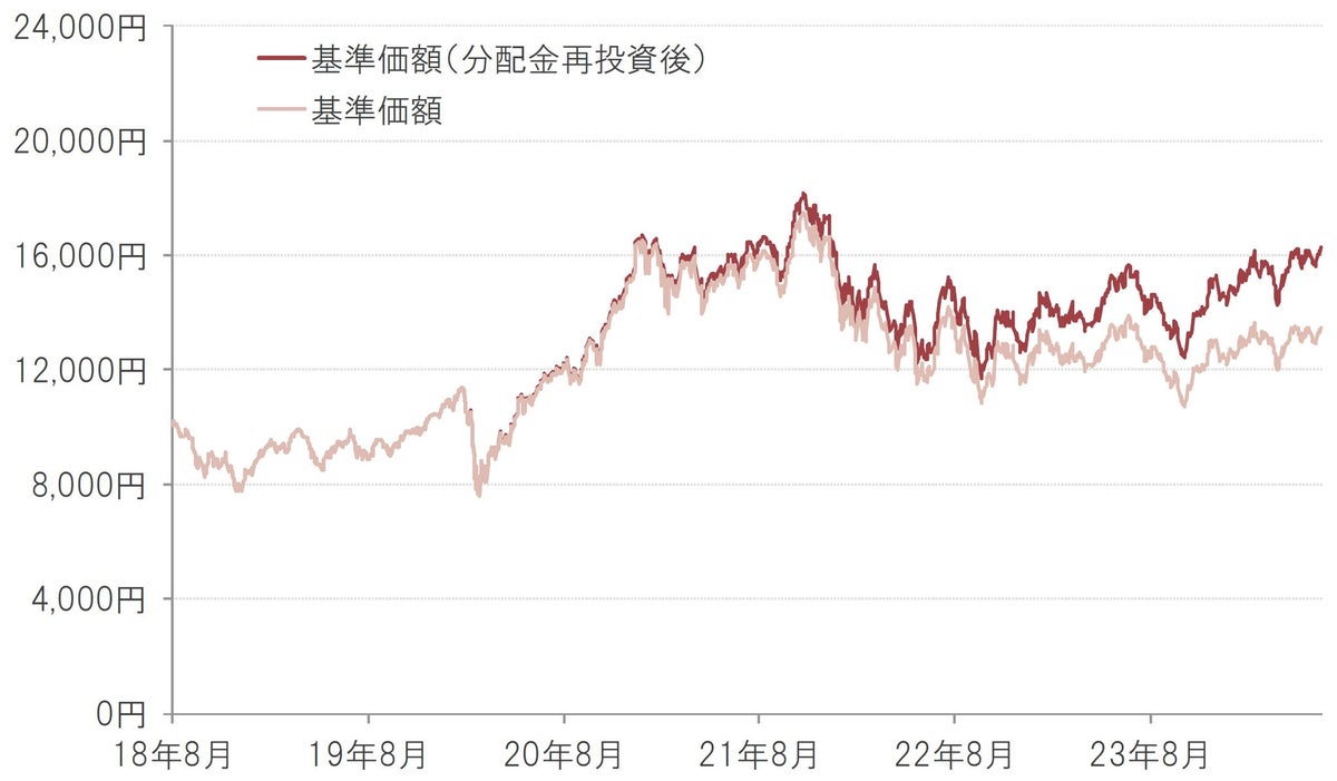基準価額の推移(年2回決算型、為替ヘッジなし)