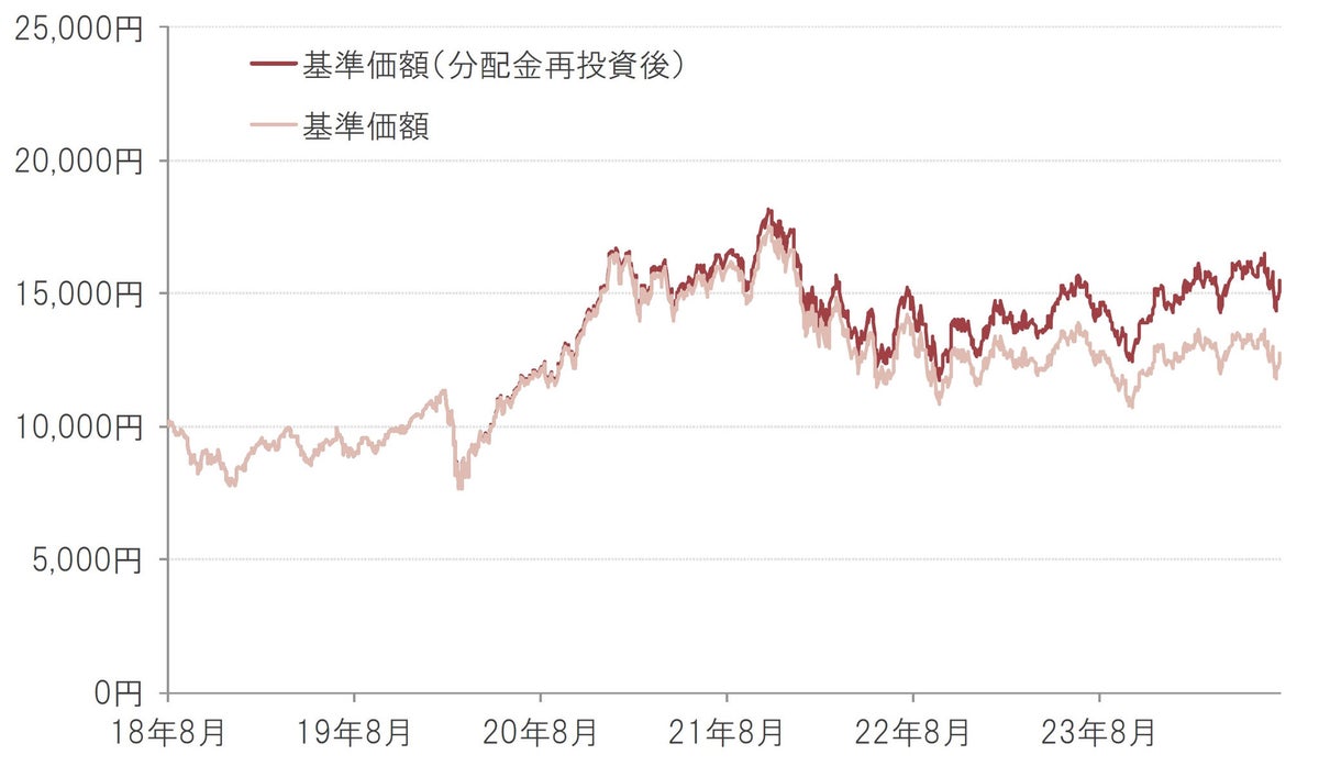 ※基準価額は1万口当たり、実質的な信託報酬等控除後。基準価額(分配金再投資後)は、購入時手数料等を考慮せず、税引前分配金を再投資した場合の評価額を表します。換金時の費用・税金等は考慮していません。