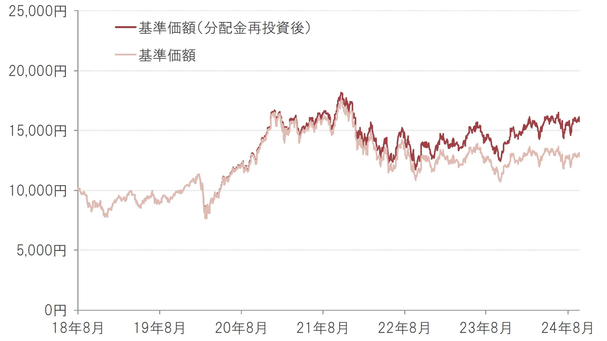 ※基準価額は1万口当たり、実質的な信託報酬等控除後。基準価額(分配金再投資後)は、購入時手数料等を考慮せず、税引前分配金を再投資した場合の評価額を表します。換金時の費用・税金等は考慮していません。