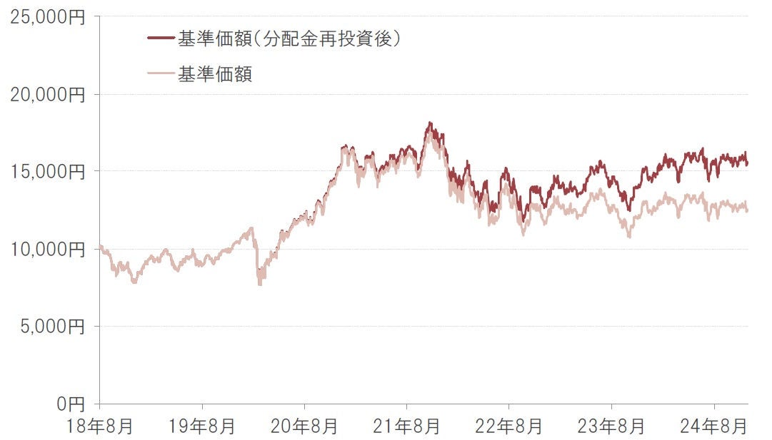 ※基準価額は1万口当たり、実質的な信託報酬等控除後。基準価額(分配金再投資後)は、購入時手数料等を考慮せず、税引前分配金を再投資した場合の評価額を表します。換金時の費用・税金等は考慮していません。