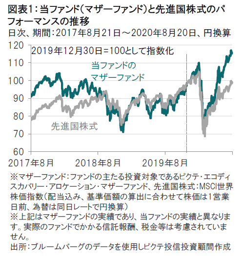 当ファンドのマザーファンドのパフォーマンスは、年初来、先進国株式を上回ってきました。当ファンドで組入上位の情報技術関連や再生可能エネルギーに強みを持つ公益銘柄などが堅調な動きとなったことが寄与しました。