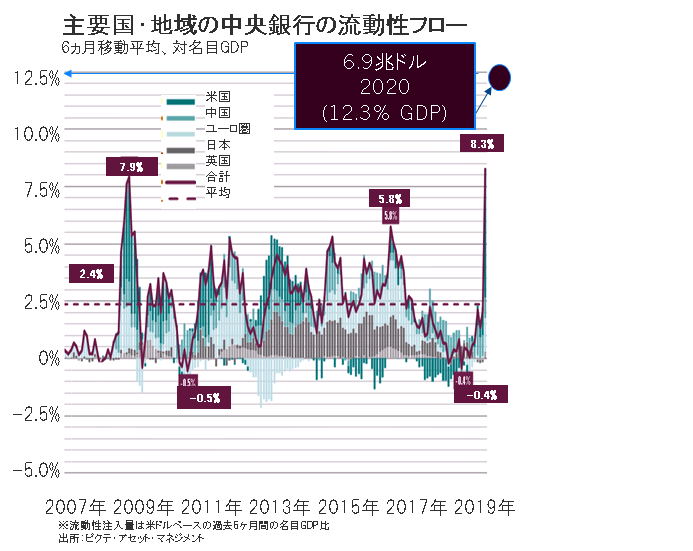 主要中央銀行の流動性供給拡大による国債利回り低下は配当利回りの相対的魅力を高める