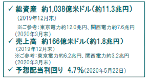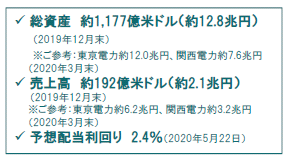 【会社概要】 米国バージニア州リッチモンドに本社を置く米国公益事業大手。起源は米国の独立宣言の1787年にさかのぼり、本格的な電力事業参入は1909年と100年以上の歴史を有する。