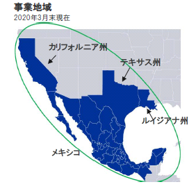 【会社概要】 エネルギー・サービスの持株会社。米国カリフォルニア、テキサス州やメキシコの規制下事業と、ルイジアナ州で液化天然ガス(LNG)の輸出ターミナル事業を行う。