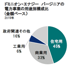 ドミニオン・エナジーの主な利益構成ではバージニア州の規制下事業の比率が高くなっています。バージニア州は工業向け顧客の比率が極めて少なく、一方、データセンター事業向けの比率が高くなっています。同社の顧客には、アマゾンやフェイスブックといったインターネット関連大手の大口顧客が名を連ねています。これらの企業の事業は感染拡大の際には、在宅時間の増加によるオンラインショピングの売上増などの恩恵を受けて堅調に推移しています。