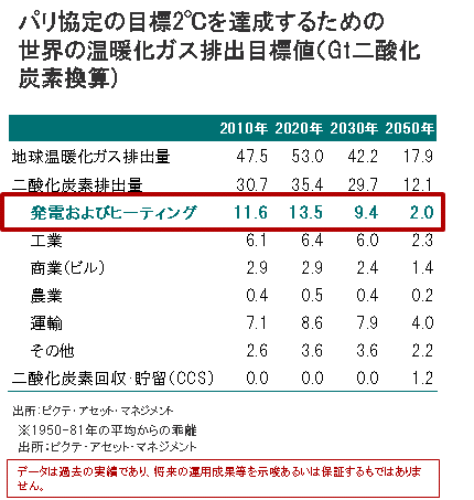 第一に、再生可能エネルギーなどの脱炭素技術を使った発電への転換を図ることです。世界の殆どの地域が、 進捗具合は異なりますが、このような方向に移行しています。