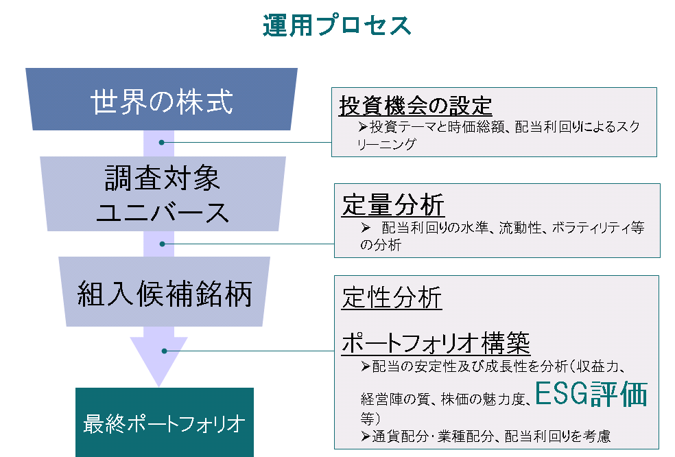 当ファンドの投資では、投資対象選別のなかにESG評価を取り入れ