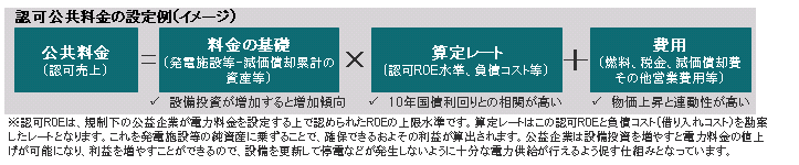 規制下の電力料金をはじめとした公共料金の計算方法は複雑で国や地域によって異なりますが、単純化すると、料金は発電施設の資産価値(レートベース)に対して一定の利益を確保する算定レート(ROEなどが元になる)を掛けて、燃料費などのコストをプラスして設定されます。このため、設備投資を拡大し、発電施設の資産価値が増加すればするほど、増益要因となる仕組みになっています。