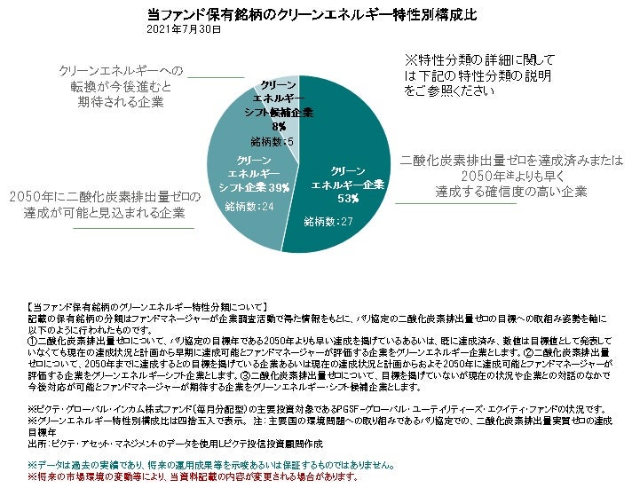 当ファンドは、クリーンエネルギーに注力する企業、クリーンエネルギーにシフトする企業、クリーンエネルギーへの転換が進むと期待される企業に投資を行っています。