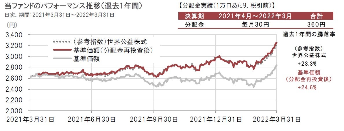 ■ 当ファンドのパフォーマンス~ウクライナ侵攻と資源価格高騰で公益株式の インフレ耐性やディフェンシブ性が注目される
