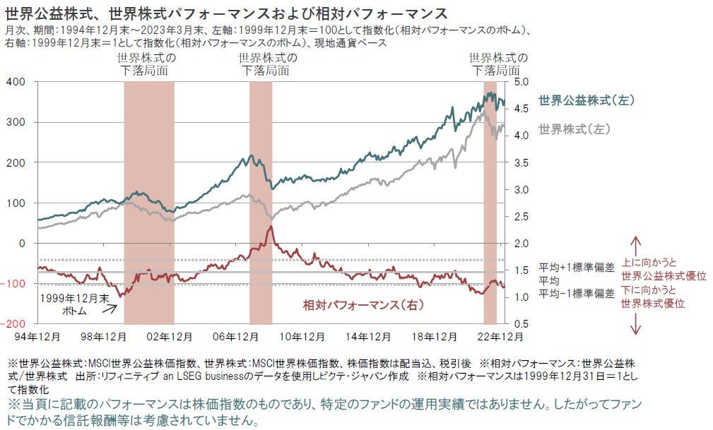 過去の実績では、世界の株式市場の大きな調整局面では、世界公益株式は相対的に安定した公益事業のディフェンシブ性などを背景に、相対的に低い下落率にとどまりました。