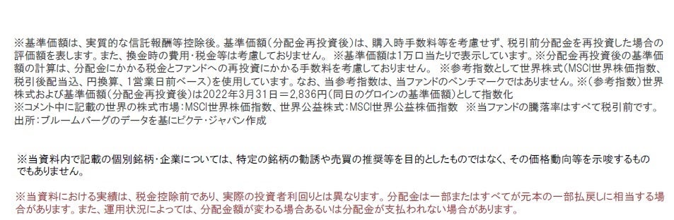●当資料はピクテ・ジャパン株式会社が作成した販売用資料であり、金融商品取引法に基づく開示書類ではありません。取得の申込みにあたっては、販売会社よりお渡しする最新の投資信託説明書(交付目論見書)等の内容を必ずご確認の上、ご自身でご判断ください。