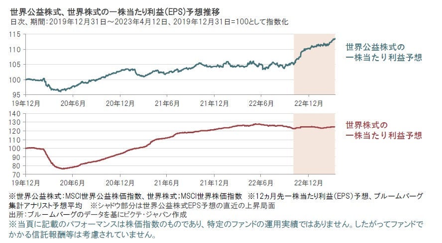 米地銀の破綻などを受けた金融不安が欧州にまで波及し、企業業績やマクロ経済見通しに対する不透明感が高まっています。こうしたなか、公益企業は、発電施設などの長期的に運営される設備に投資し、日常に必要不可欠なサービスを提供することで、収益を拡大しており、短期的なマクロ経済の変動の影響を受けにくくなっています。このため、公益企業の中長期的な成長の見通しは良好です。こうした経済や金融市場の先行き不透明感が高まるなか、株価の調整は公益株式の中長期的な投資機会を提供する可能性があると考えます。