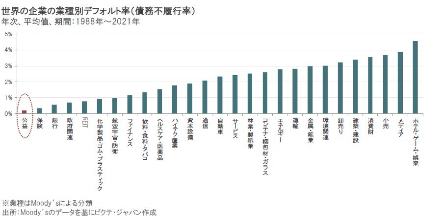 公益企業は日常に必要不可欠なサービスを提供し、安定した事業基盤を持っていることから、他の業種と比べて、市場のショック時でもデフォルト率は相対的に低くとどまりました。過去30年余りの実績でも、デフォルト率(債務不履行率)は最低水準となっています。