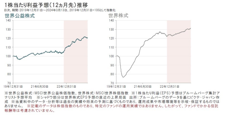 加えて、世界公益株式の1株当たり利益(EPS)予想は底堅く推移しており、世界公益株式の株価の下支え役として期待されます。