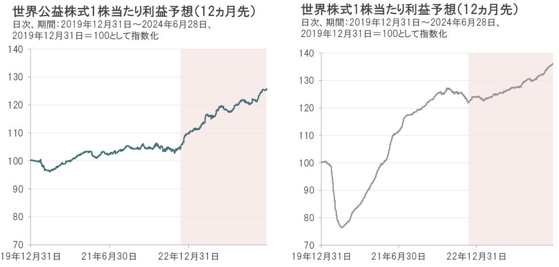世界の経済成長、生成AI等の普及などを背景にした電力需要と設備投資の増加、電力価格の上昇、グリーンシフトなどによる利益の拡大期待などにより、公益株式の1株当たり利益(EPS)の市場予想(12ヵ月先)は、足元で増加基調が継続しています。