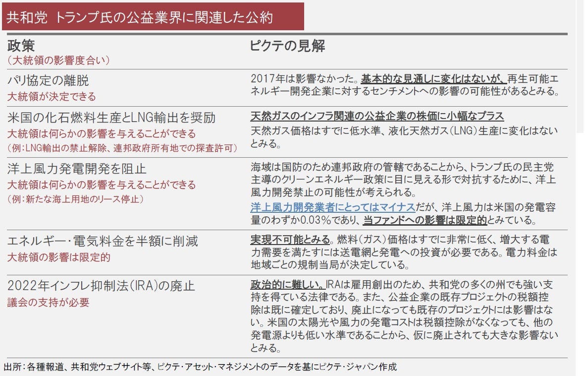 米国大統領選時のトランプ氏の公約による公益業界のファンダメンタルズへの影響は限定的と考えます。