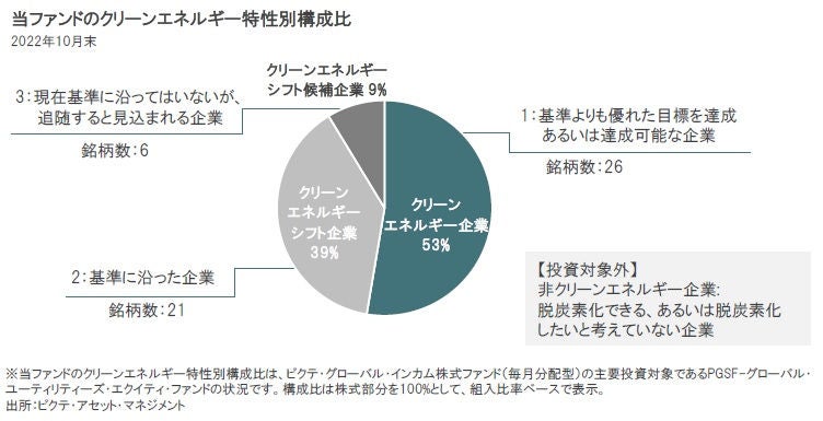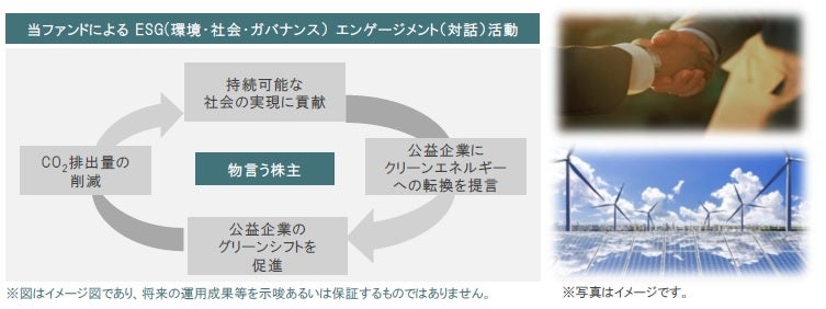 当ファンドは投資先ファンドを通じて、環境・社会・ガバナンス(ESG)の観点を銘柄選別の要素とし、公益企業へのESGに関するエンゲージメント(対話)などを行い、化石燃料による発電から太陽光・風力などのクリーンエネルギーによる発電へのシフト、「グリーンシフト」を促しています。