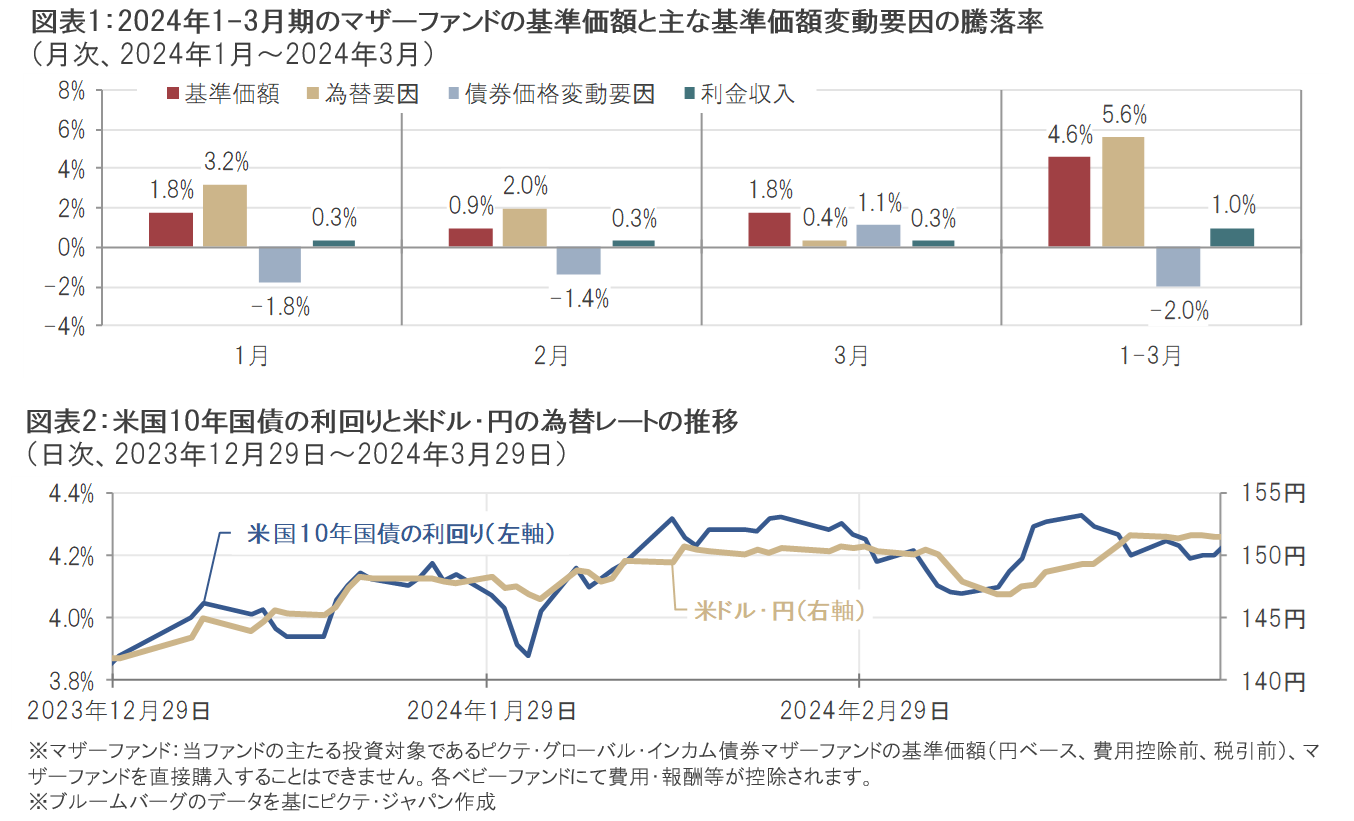 図表1は、2024年年初からの各月および1-3月期のマザーファンドの基準価額の騰落率と、その内訳である、主な基準価額変動要因の騰落率です。マザーファンドの基準価額の騰落率は各月ともプラスとなり、1-3月期を通してみると+4.6%となりました。