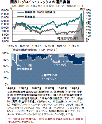 一部地域で新型コロナウイルスの感染拡大ペースに減速が見られたことや、主要国の支援策や経済活動の再開に向けた動きなどが支援材料となり株式市場は急回復しました。こうしたなか、グロイン・フレックスおよびグロイン・フレックス1年は、2月に変更した株式比率約90%、円資産比率約25%を継続しました。
